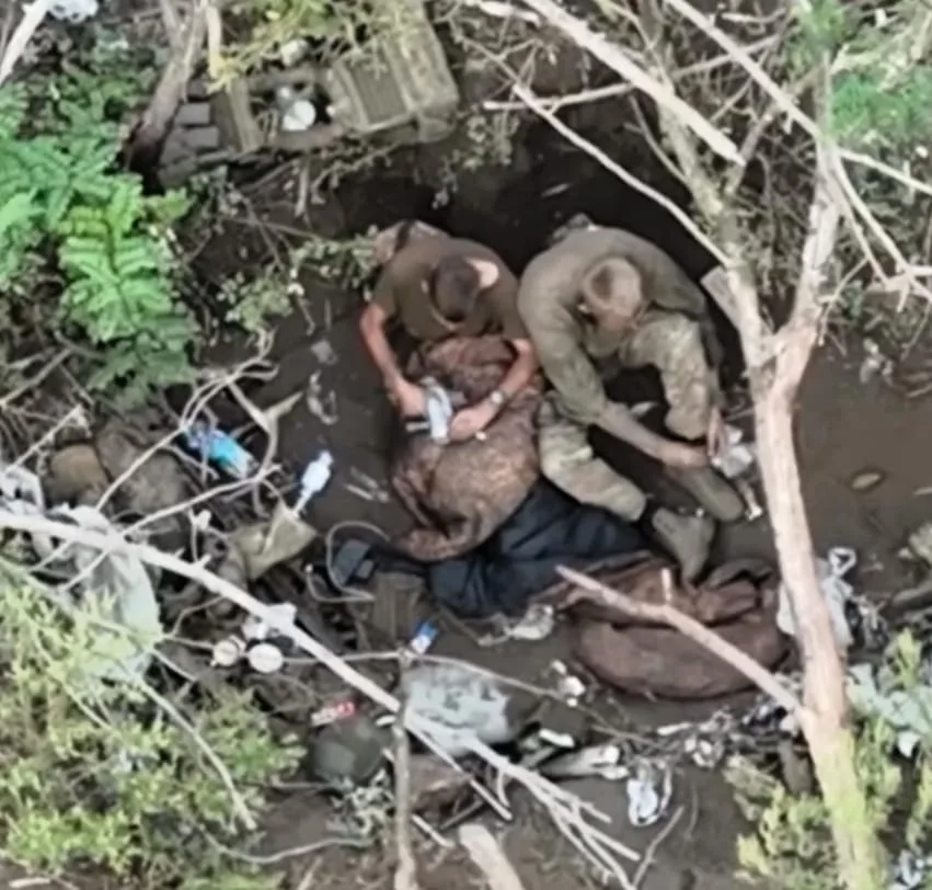 Але в якийсь момент окупанти згадали про своїх штурмовиків і скинули з дрона пару пляшок води. На її пошуки виліз із нори один із ворогів. Чим і демаскував місце перебування.