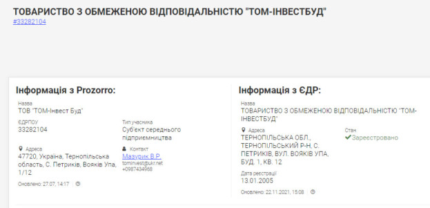 Думаємо тернополянам буде цікаво більше дізнатися про виконавця робіт – ТОВ «ТОМ-Інвест Буд». Станом на сьогодні управління ЖКГ міської ради замовило робіт у цього товариства на загальну суму понад 133 мільйони гривень, КДЮСШ з ігрових видів спорту” ТМР – на понад 16 мільйонів, квартирно-експлуатаційний відділ – понад 11 млн, КП «Об`єднання парків культури і відпочинку м. Тернополя» – майже 6 млн., управління освіти і науки – майже 3 млн. тощо. Всього з бюджету міста ця фірма отримала за різні види робіт майже 179 мільйонів бюджетних гривень. Ви знаєте людей, які не близькі з нашим мером і мають такий широкий доступ до бюджетних коштів? Висновки думаю тернополяни зроблять самі…