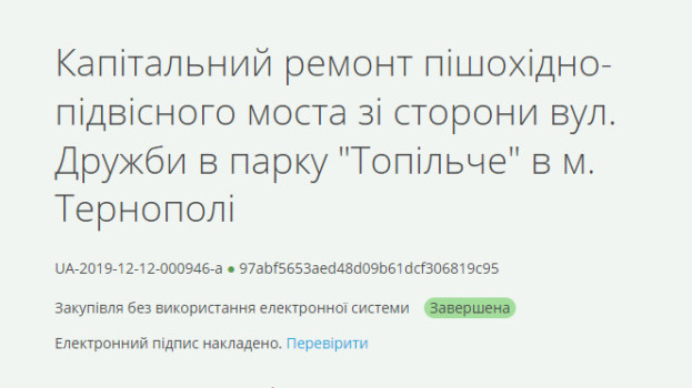 Виконавцем робіт виступила фірма ТОВ «ТОМ-Інвест Буд», власником якого є такий собі В. Мазурик з приміських Петриків. За ситуації, яка сталася якось слабо віриться, що тернопільська влада змусить цього пана потратитися на новий ремонт, як того вимагає договір. Саме до такого висновку приходиш після коментарів речниці міської ради Мар’яни Зварич, яка стверджує, що «в 2020 році проводилися заміна дерев’яного покриття мосту – пішохідної частини, наразі ж ремонтуються інші елементи мосту – кріплення». Якщо за майже 400 тис. грн. замінили дерев’яні елементи, то стільки ж ще потрібно грошей, щоби провести заміну металевих? Але найцікавіше те, що представниця влади суперечить сама собі, адже у 2020 році Тернопільська міської ради рапортувала про відремонтовані «всі металеві(!) конструкції аварійного мосту та дерев’яні покриття».