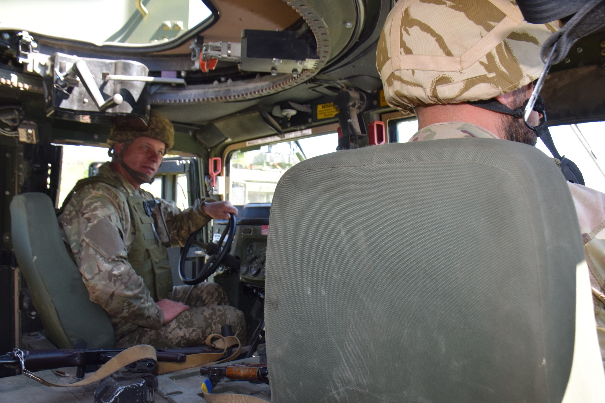 На фото бійці 85-го окремого батальйону 105-тої бригади, які доставляють на передову боєприпаси та провізію, використовуючи броньовані автомобілі.