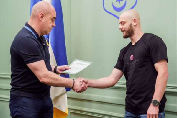 Вiйськовослужбовець спецпризначення “Азов” Сергiй Янзюк отримав вiд Тернопiльської мiської громади сертифiкат на квартиру. Урочисту церемонiю вручення провiв мiський голова Сергiй Надал як визнання героїчної служби захисника України.