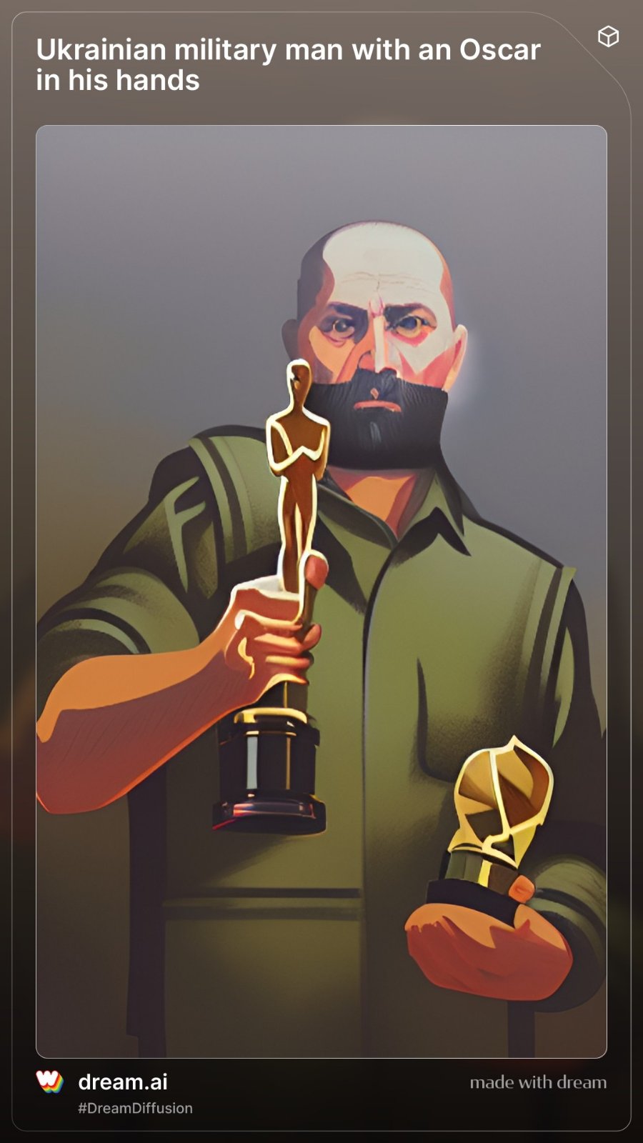 До слова, такі ось плакати з мужніми й сильними українськими Воїнами нині дуже популярні в Канаді й Швеції. На одному з них – свбоідвець, офіцер Андрій Русенко з позивним «Оскар». Статуетку йому вручили побратими за …успішну бойову операцію, про яку можна буде розповісти після війни.