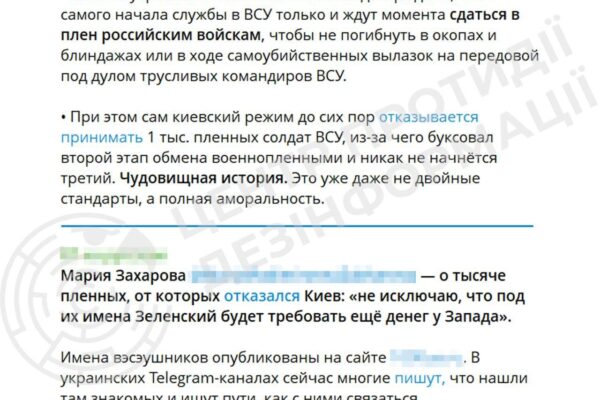 Також у цьому інформаційному вкиді пропагандисти поширюють фейкові наративи про те, що українські військові з початку служби нібито «мріють швидше потрапити в полон».