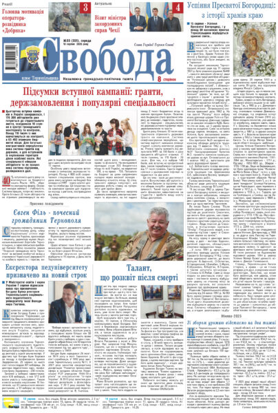 Газета “Свобода плюс Тернопільщина” № 35 (553) від 27 серпня 2025 року