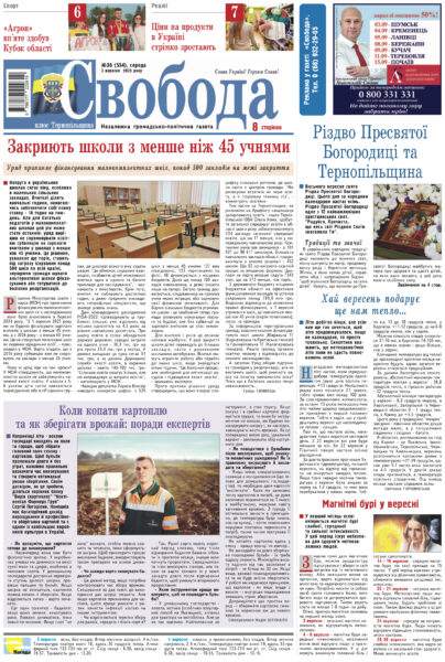 Газета “Свобода плюс Тернопільщина” № 36 (554) від 3 вересня 2025 року