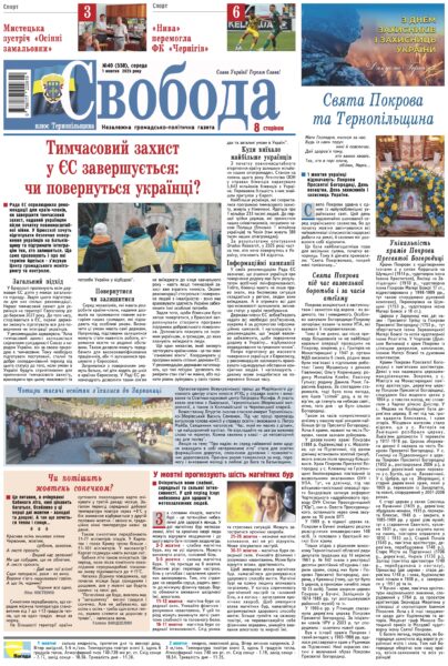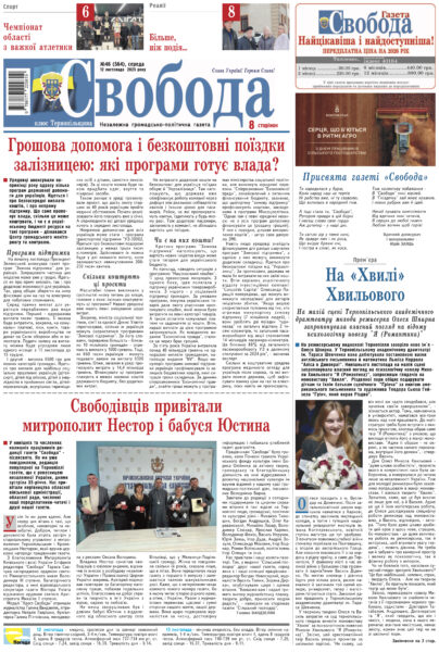 Газета “Свобода плюс Тернопільщина” № 46 (564) від 15 жовтня 2025 року
