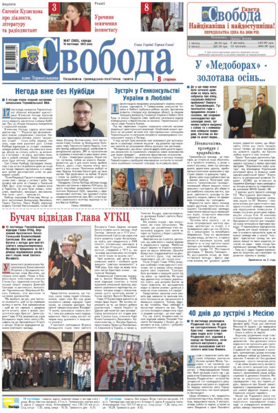 Газета “Свобода плюс Тернопільщина” № 47 (565) від 15 жовтня 2025 року