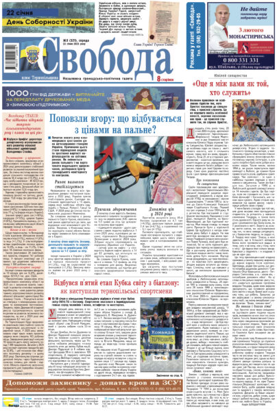 Газета “Свобода плюс Тернопільщина” № 3 (521) від 22 січня 2025 року