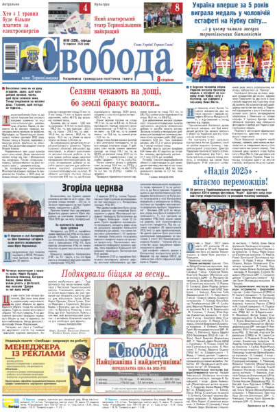 Газета “Свобода плюс Тернопільщина” № 13 (531) від 2 квітня 2025 року