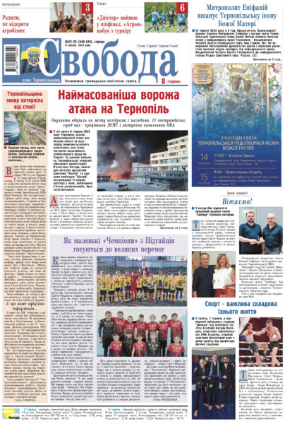 Газета “Свобода плюс Тернопільщина” № 22-23 (540-541) від 11 червня 2025 року