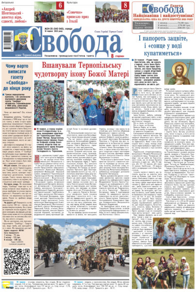 Газета “Свобода плюс Тернопільщина” № 26 (544) від 25 червня 2025 року