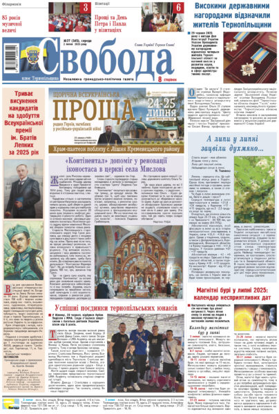 Газета “Свобода плюс Тернопільщина” № 27 (545) від 2 липня 2025 року