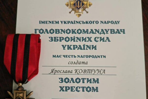 Військовослужбовець Ярослав Ковтун з села Носів Підгаєцької громади на Тернопільщині відзначений Золотим хрестом — державною нагородою, яка вручається за виняткову мужність, рішучість та вірність військовому обов’язку.