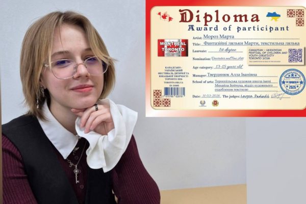 Вихованка Тернопільської художньої школи імені Михайла Бойчука представила на міжнародний розсуд серію авторських робіт «Фантазійні ляльки Марти», яка отримала найвищу оцінку журі в номінації «Декоративно-прикладне та образотворче мистецтво».