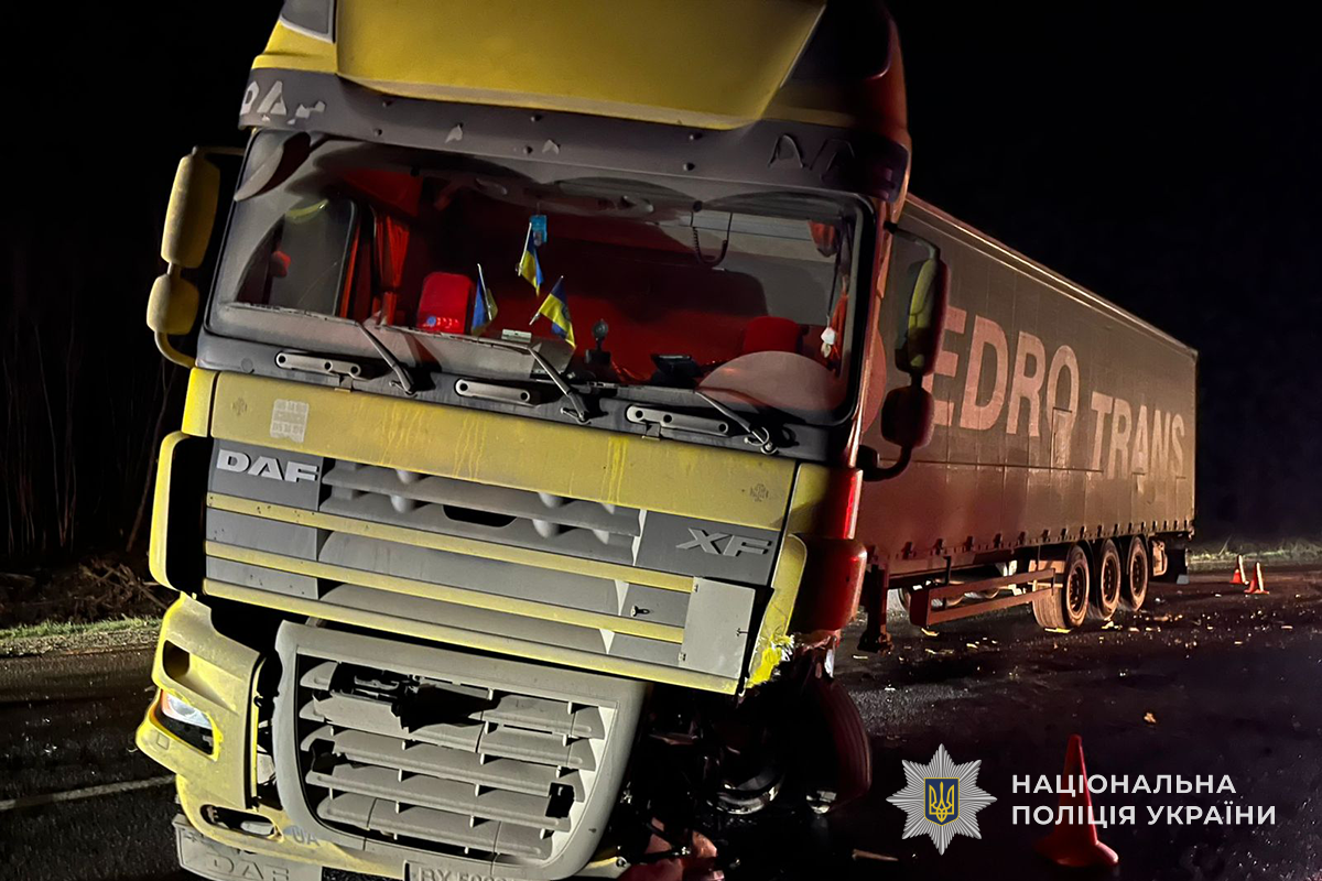 За попередніми даними, у селі Ступки на автодорозі Стрий-Тернопіль-Кропивницький-Знам’янка-Дніпро-Луганськ-Ізварине водій Volkswagen golf допустив виїзд на смугу зустрічного руху та зіткнувся з автопоїздом у складі сідлового тягача DAF.