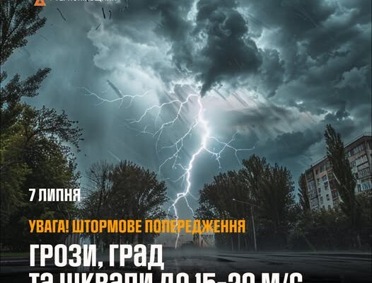 На обласному центрі з гідрометеорології повідомили, що, окрім шквального вітру, загалом 7 липня в області прогнозують мінливу хмарність, вночі без опадів.
