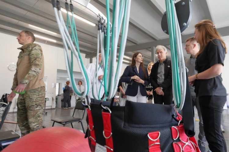 Після відкриття реабілітаційного центру іноземні благодійники ознайомились із роботою закладу, з особливостями надання реабілітації, а також поспілкувалися з пацієнтами щодо ефективності занять на нових тренажерах.