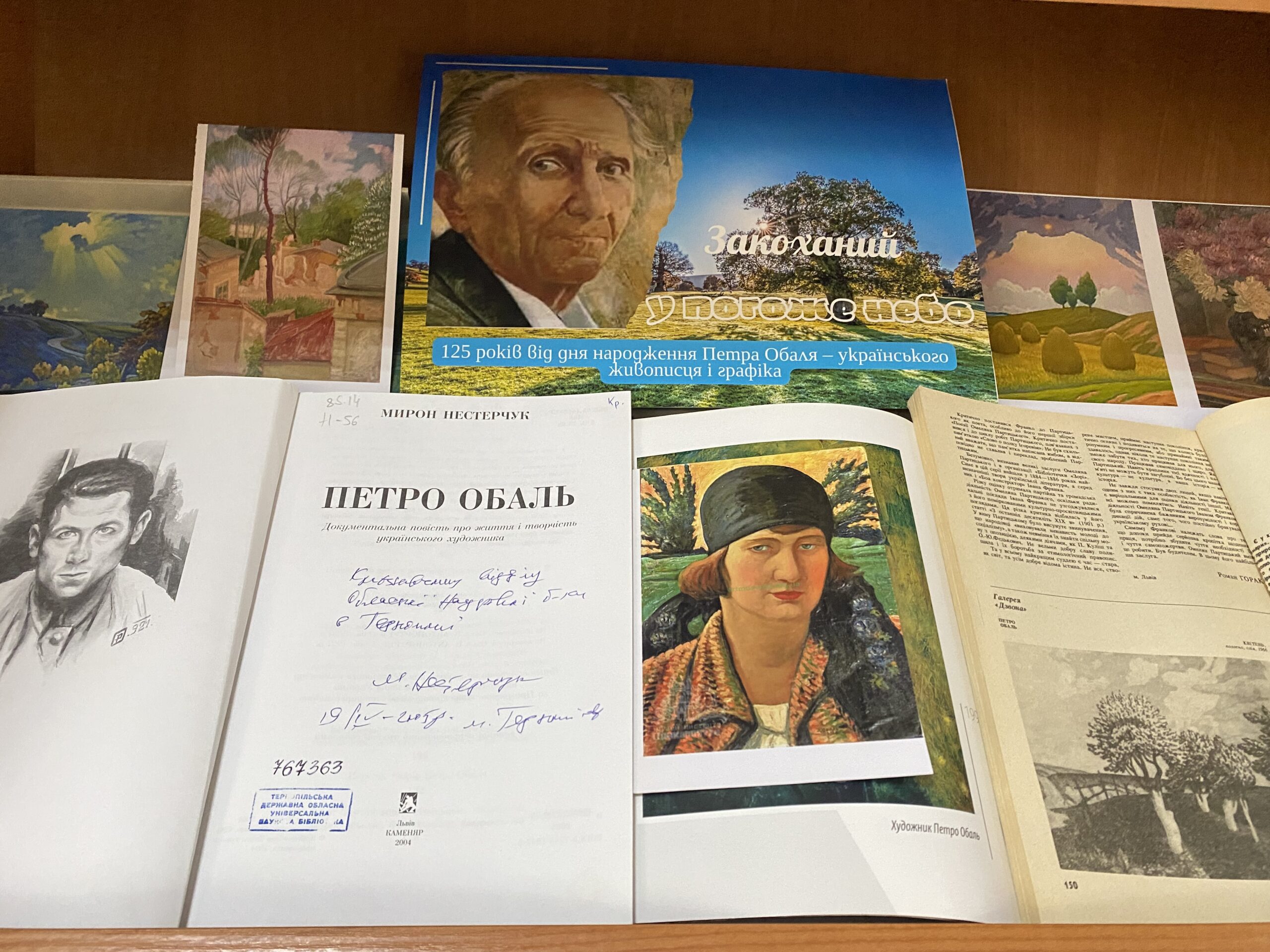 У відділі краєзнавчої літератури та бібліографії Тернопільської ОУНБ до 125-річчя від дня народження художника діє книжково-ілюстративна виставка «Закоханий у погоже небо». Виставка знайомить з життєвим і творчим шляхом П. Обаля, оцінкою його мистецького таланту. Зокрема, представлено статті тернопільських мистецтвознавців Ігоря Герети, Тамари Удіної та інших українських дослідників.