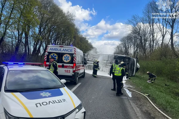 Неподалік Зборова 26 квітня сталася ДТП з травмованими. Перекинулась фура, яка перекрила дорогу. Про це повідомили в патрульній поліції Тернопільщини.