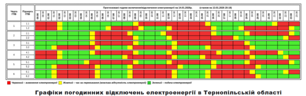 Графік протягом доби може змінюватися. Слідкувати за оновленнями можна на офіційному сайті Тернопільобленерго.