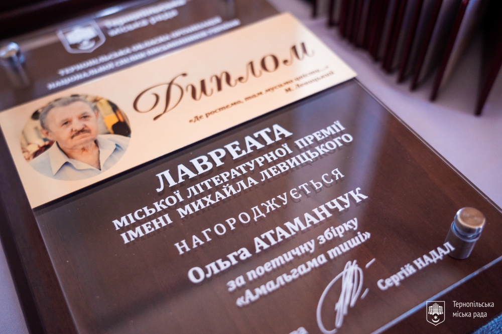 У рамках святкування Дня міста Тернополя, міський голова Сергій Надал вручив поетесі Ользі Атаманчук міську літературну премію імені Михайла Левицького. Ця престижна нагорода щороку присуджується за кращу поетичну збірку, підтримуючи розвиток літераторського процесу на Тернопільщині.