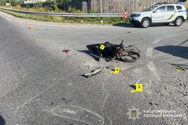 Третій випадок дорожньо-транспортної пригоди  за участю водія двоколісного транспортного засобу стався між населеними пунктами Вигода  та  Окопи Чортківського району.  Водій автомобіля марки  Volkswagen не дотримався безпечної дистанції та допустив зіткнення з мотоциклом, яким кepував  неповнолітній житель села Боришківці Чортківського району. Внаслідок ДТП водій мотоцикла госпіталізований з численними травмами.