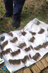 Як повідомив речник СБУ у Тернопільскій області Петро Королюк, тайник знаходився під землею поруч із покинутим садом на околиці селища Млинівці. Зі схованки правоохоронці, серед іншого, вилучили: