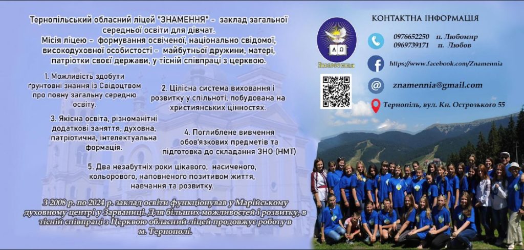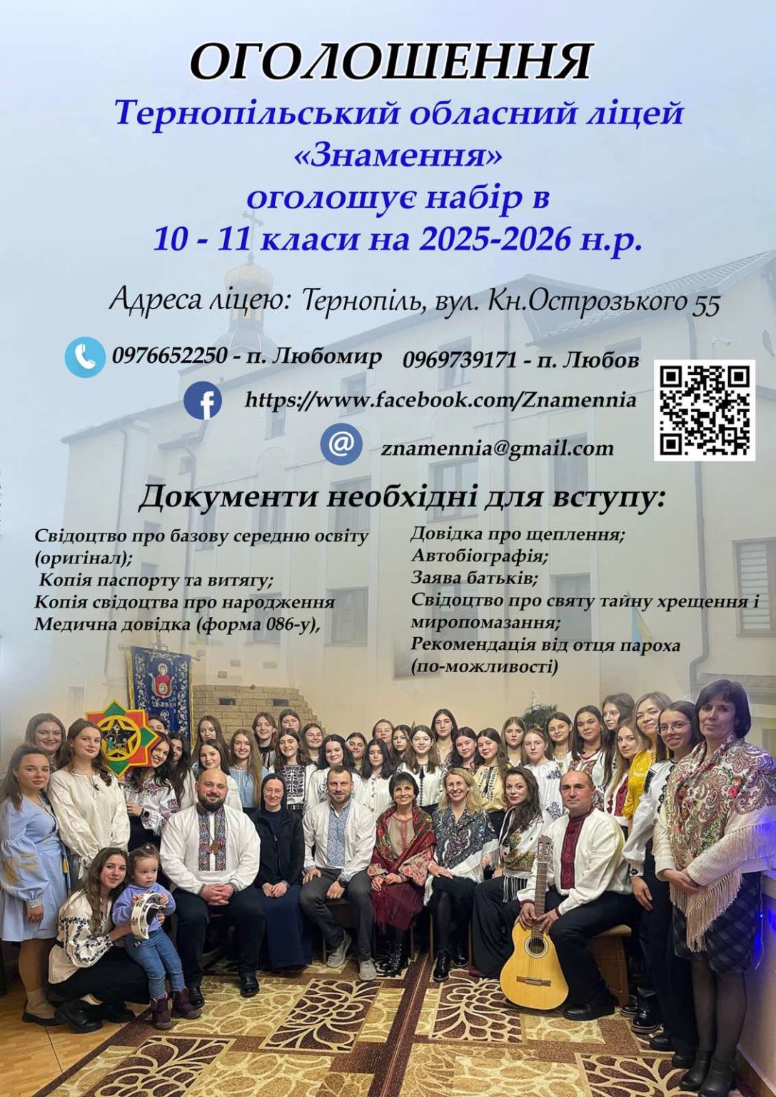 Принагідно нагадаємо, Тернопільський ліцей “Знамення” оголошує набір в 10-11 класи на 2025-2026 рр.