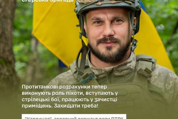 Восени 2022 року “Кардинал” уперше потрапив на Донеччину. З простого солдата він виріс до головного сержанта роти ПТРК — навчає новобранців, бере участь у розвідці, відповідає за своїх побратимів.
