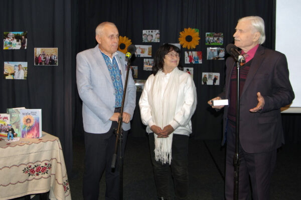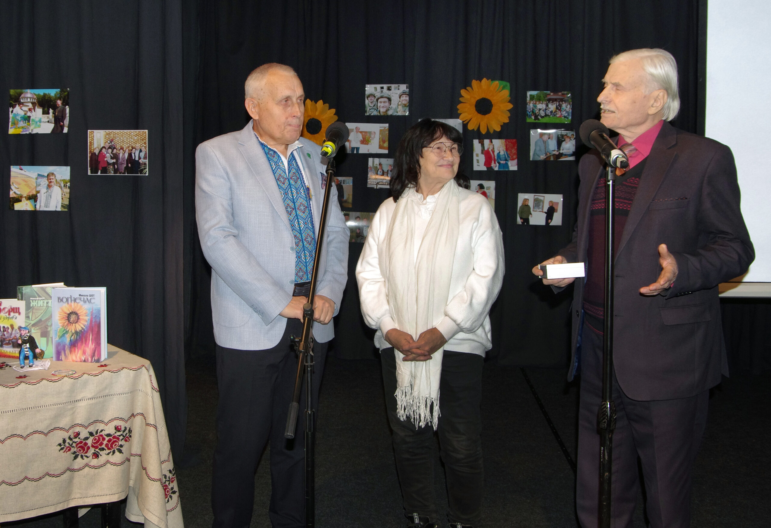 На презентації слово мали двоє з тих, хто представлений у цьому розділі книги – Олена Мудра з капеланом, отцем Володимиром Андрухівим та заслужений художник України з Теребовлі Микола Шевчук. До слова, у книзі «Вогнечас», як, зрештою, і в попередніх, є кілька матеріалів, де йдеться про волонтерські та творчі справи заслуженого художника України Миколи Шевчука і обкладинку попередньої книги Миколи Шота «Життємір» прикрасила його картина «Полтавське воркування».
