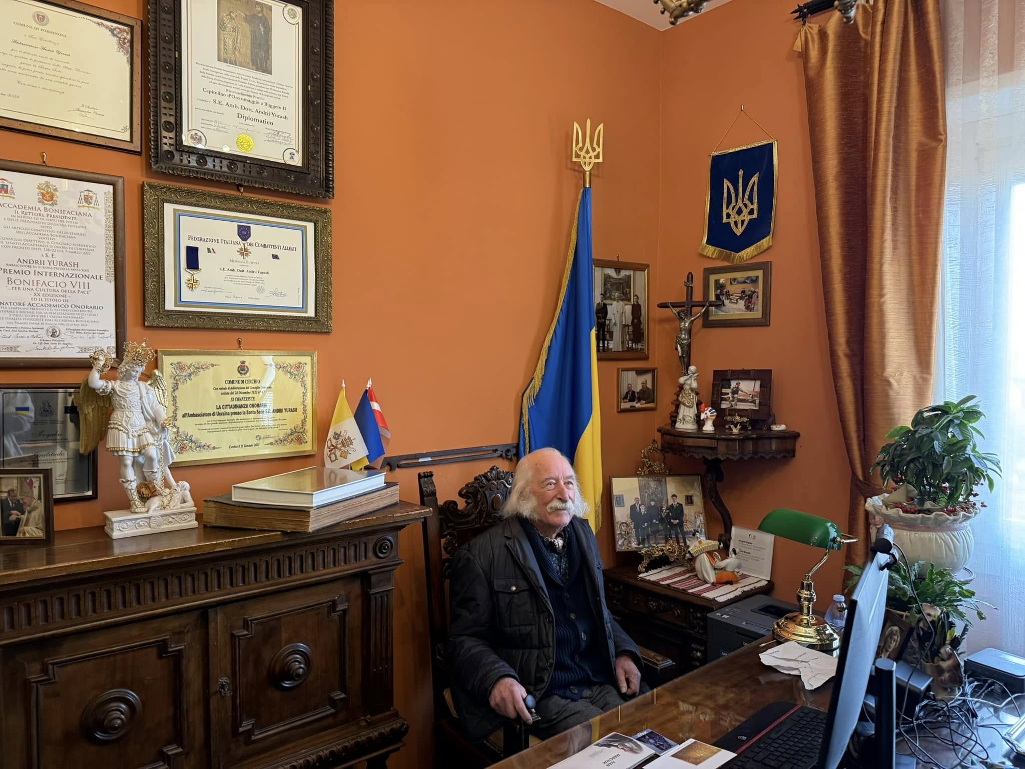 До того ж художник Іван Марчук зустрівся на приватній аудієнції з Папою Франциском. А вже після аудієнції Іван Марчук завітав до Посольства України при Святому Престолі, де його працівники спокійно поспілкувалися, розпитали про відчуття та враження від зустрічі з Папою, попили каву з тернопільськими пляцками – конвертиками з яблуками. А ще – подивились на одного крикливого «працівника» посольства – папугу-амазона на імʼя Томос, бо маєстро дуже любить птахів.