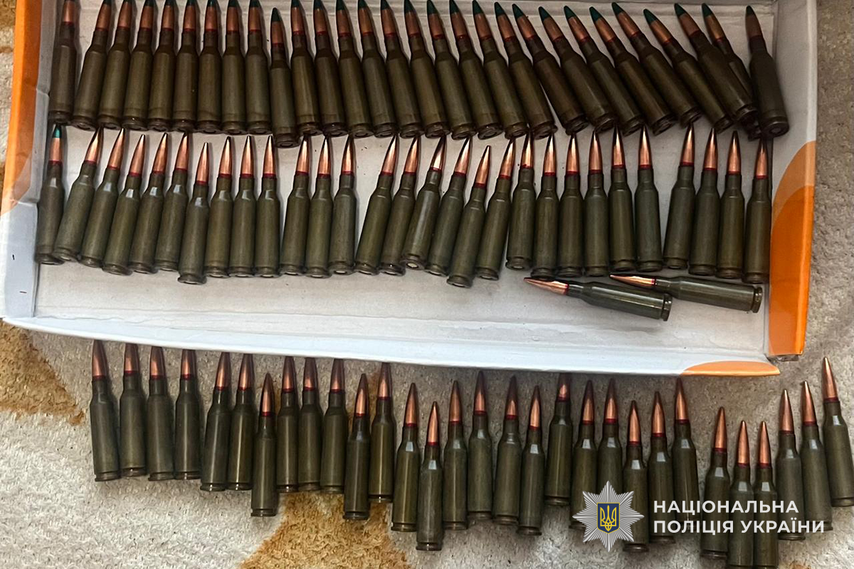 На підставі ухвали Гусятинського районного суду правоохоронці провели санкціонований обшук у будинку фігуранта і виявили 109 патронів калібру 5,45 мм та 7 паперових згортків із речовиною рослинного походження зелено-коричневого кольору, схожою на канабіс.