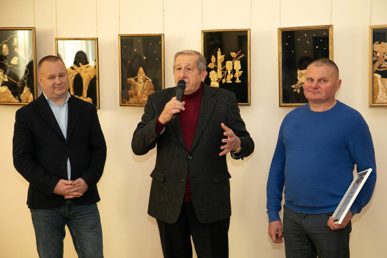 У своєму виступі Петро Левицький розповів про шлях у мистецтві, символіку солом’яних композицій та особливу техніку роботи з природним матеріалом, який у його руках перетворюється на «Золоті фантазії».