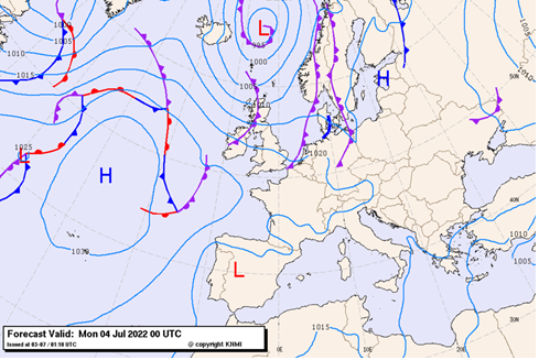 04 липня: Мінлива хмарність. Без істотних опадів. Вночі та вранці слабкий туман. Вітер змінних напрямків, 3 – 8 м/с. Температура вночі 14 – 19º, вдень 27 – 32º тепла.