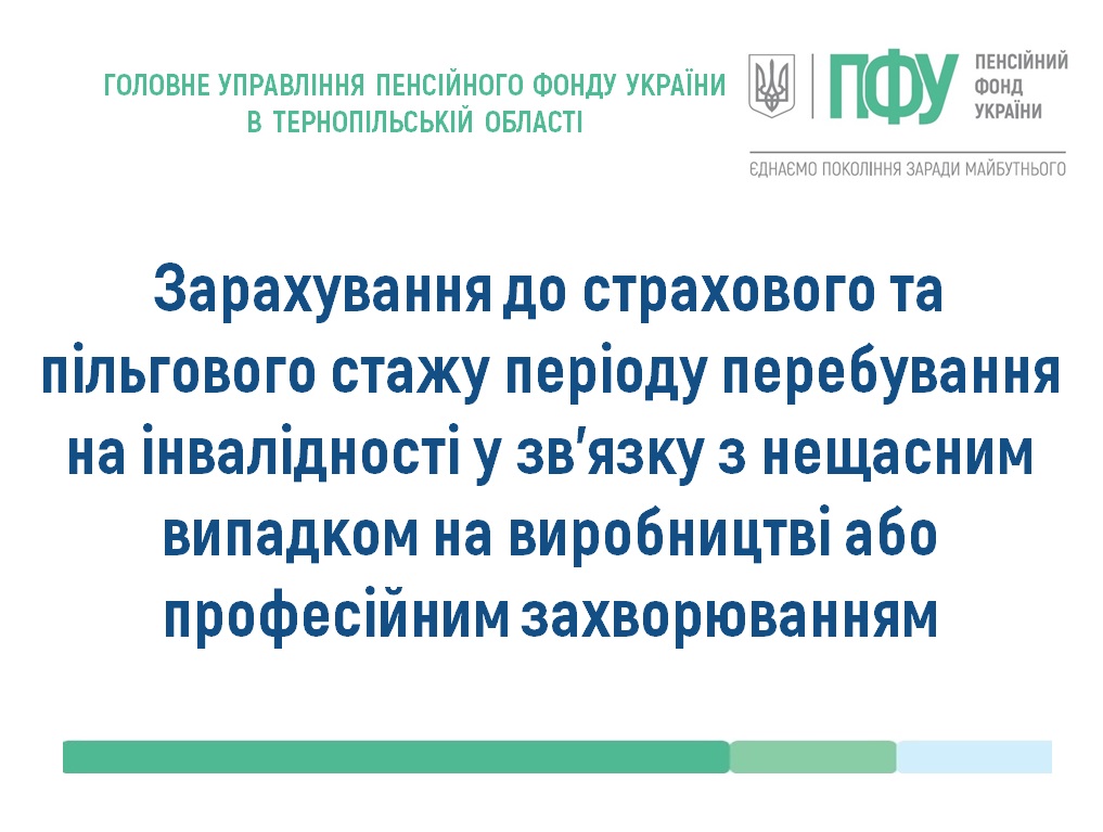 Відповідно до статті 56 Закону України від 05 листопада 1991 року № 1788-XII «Про пенсійне забезпечення» час перебування на інвалідності у зв’язку з нещасним випадком на виробництві або професійним захворюванням зараховується до страхового стажу роботи для призначення пенсії за віком, а також до страхового стажу роботи в шкідливих умовах, який дає право на призначення пенсії на пільгових умовах і в пільгових розмірах.
