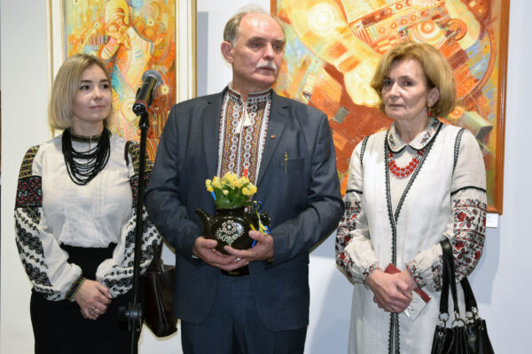 Зрештою, на відкритті персональної виставки звучало чимало теплих і добрих слів про творчість, волонтерську та громадську діяльність, людські якості Миколи Шевчука. Скажімо, крім Світлани Байталюк, від владних органів виступили також голова обласної ради Богдан Бутковський, голова Теребовлянської об’єднаної територіальної громади Олег Продан. Від духовних осіб на вернісажі про пана Миколу мовили митрофорний протоієрей УГКЦ о.Андрій-Іван Говера, капелан ПЦУ о.Володимир Андрухів, священник Марійського духовного центру в Зарваниці о.Микола Медюх. Звісно, привітати ювіляра прийшли й колеги, серед яких голова Тернопільської організації Національної спілки художників України Ігор Дорош, народний художник України Богдан Ткачик, заслужений діяч мистецтв України Михайло Кузів. Слово також тримали директор Тернопільського обласного художнього музею Григорій Шергей, в.о. директора Теребовлянського фахового коледжу культури та мистецтв Олена Ткачук, мистецтвознавець Ігор Дуда, директор Теребовлянського академічного ліцею імені Ярослави Стецько Олег Архитко, педагогиня, мовознавиця Галина Снітовська. Із селища Івано-Франкове на Львівщині приїхав з вітанням однокурсник, а нині директор Художнього професійно-технічного училища ім. Й. Станька Василь Гевало.